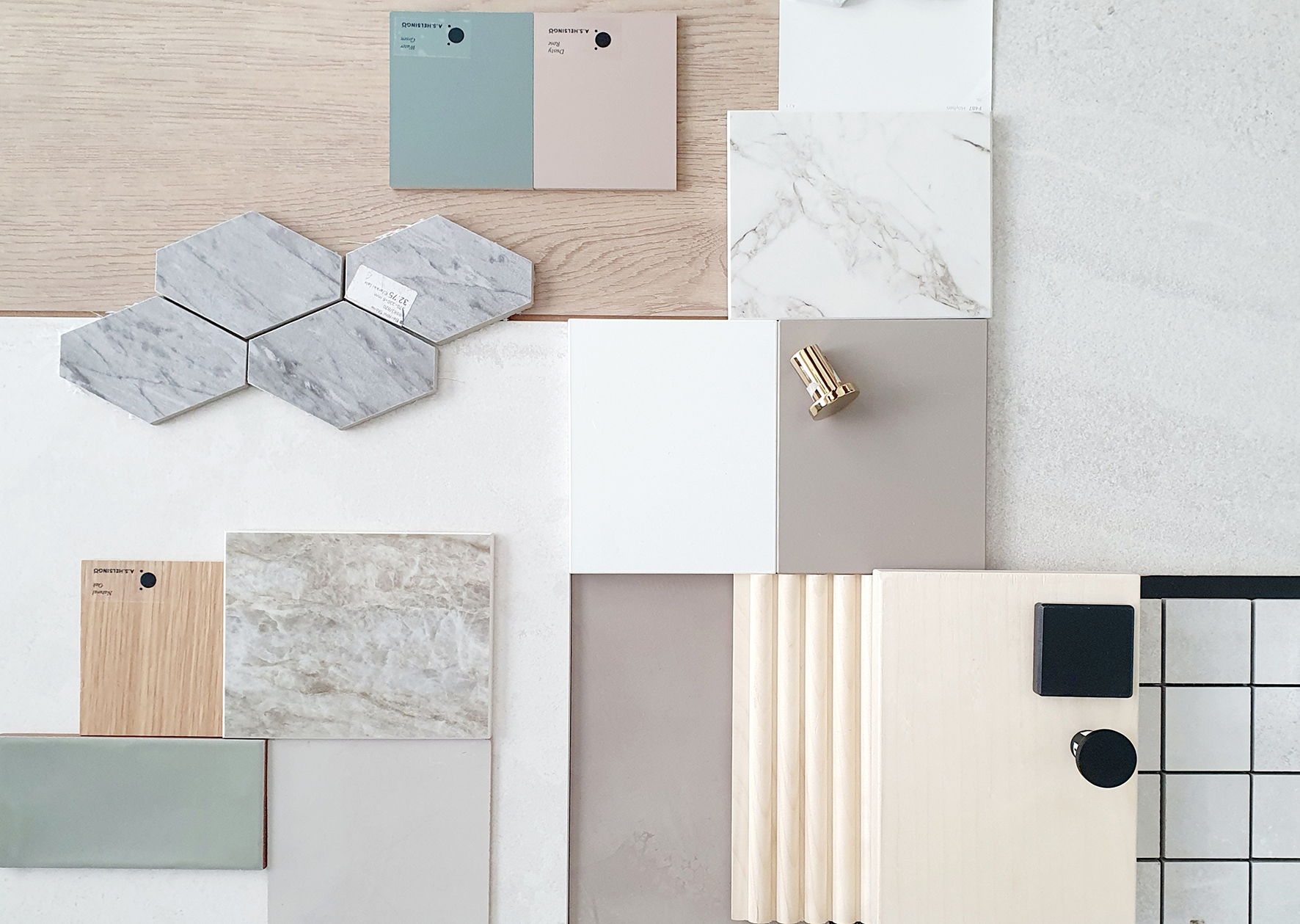 Pintamateriaalivalinnat ja värisuunnittelu on tärkeä osa sisustussuunnittelua ja siinä suunnitellaan ja valitaan tilan värit ja pintamateriaalit kuten lattia- katto- ja seinämateriaalit, vesikalusteet, ovet, porrasmateriaalit ym.
